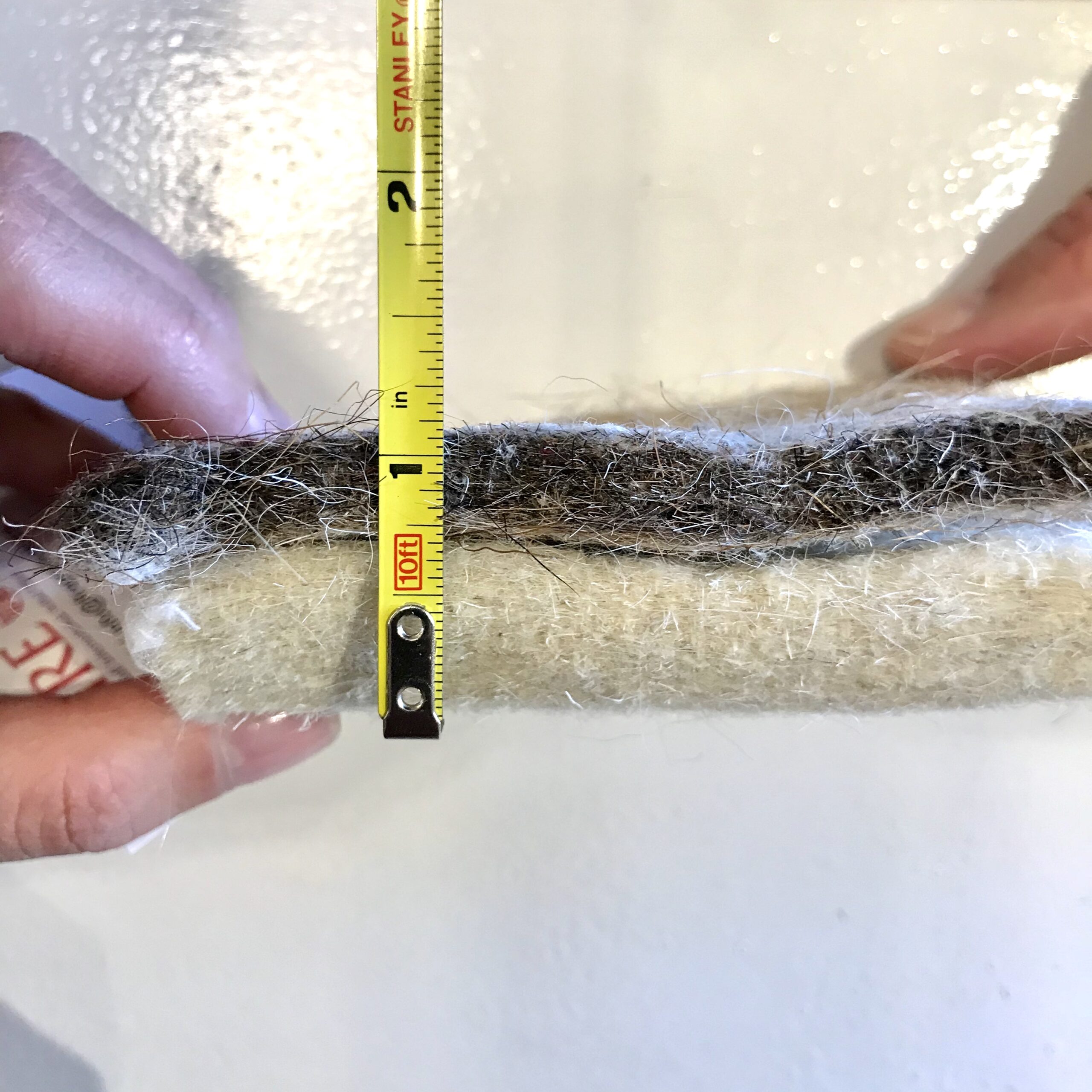 Photo:  FIRE’s white felt, almost 3/4 inch thick, compared to the Mongolian average.