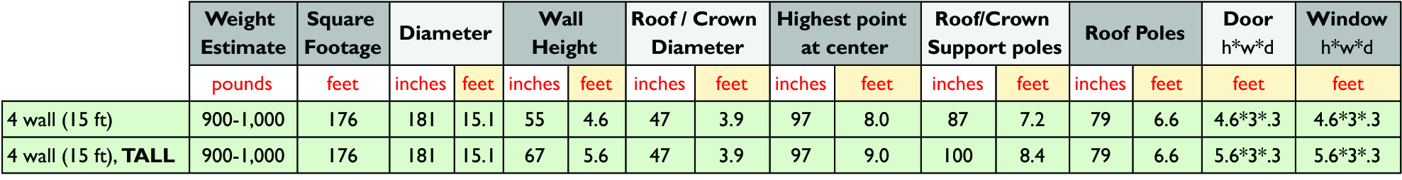This is our smallest size yurt. It is roughly 176 sq. ft. and about 15-15.5 feet in diameter. This size is usually small enough not to be counted as an ADU for many cities and counties’ permitting requirements. It weighs about 900-1,000 pounds and is the most portable and easiest to set up, take down, and transport.ย
