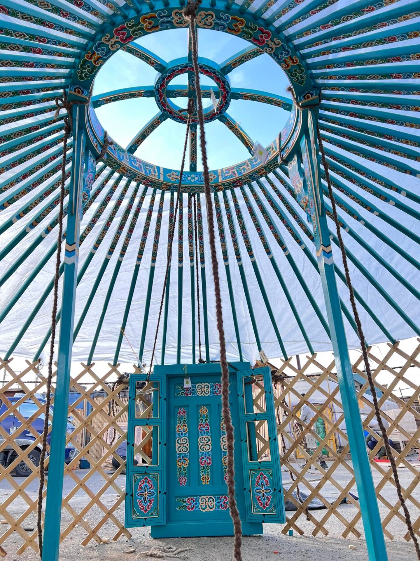 This is our smallest size yurt. It is roughly 176 sq. ft. and about 15-15.5 feet in diameter. This size is usually small enough not to be counted as an ADU for many cities and counties’ permitting requirements. It weighs about 900-1,000 pounds and is the most portable and easiest to set up, take down, and transport.ย